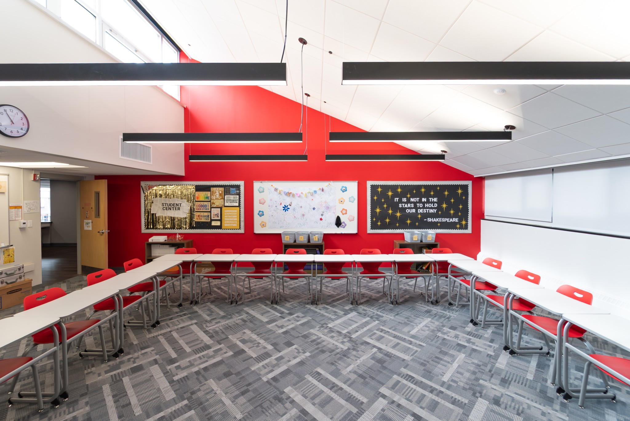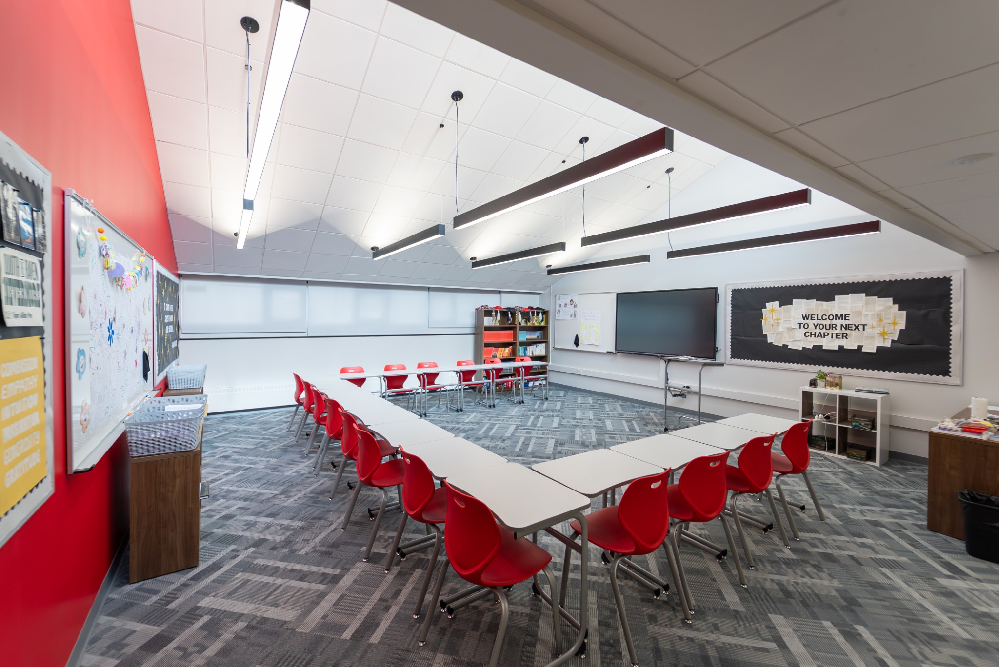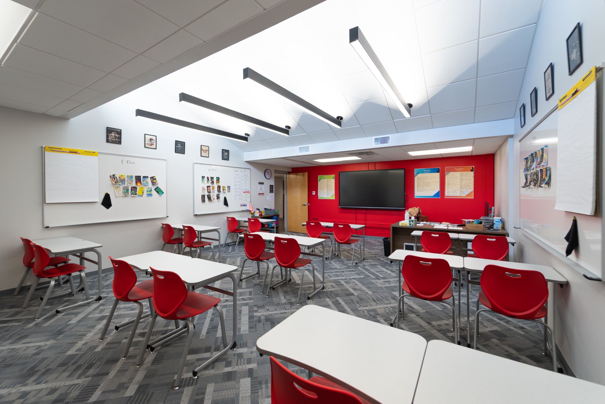 A private, college-preparatory school reimagined its upper-school building into a brighter, more modern learning environment, with student input playing an instrumental role in the process. The redesign of classrooms, common spaces, and study zones introduces flexible layouts, refreshed finishes, and a clean, contemporary aesthetic- creating an open, adaptable setting that supports both focused study and collaborative learning.