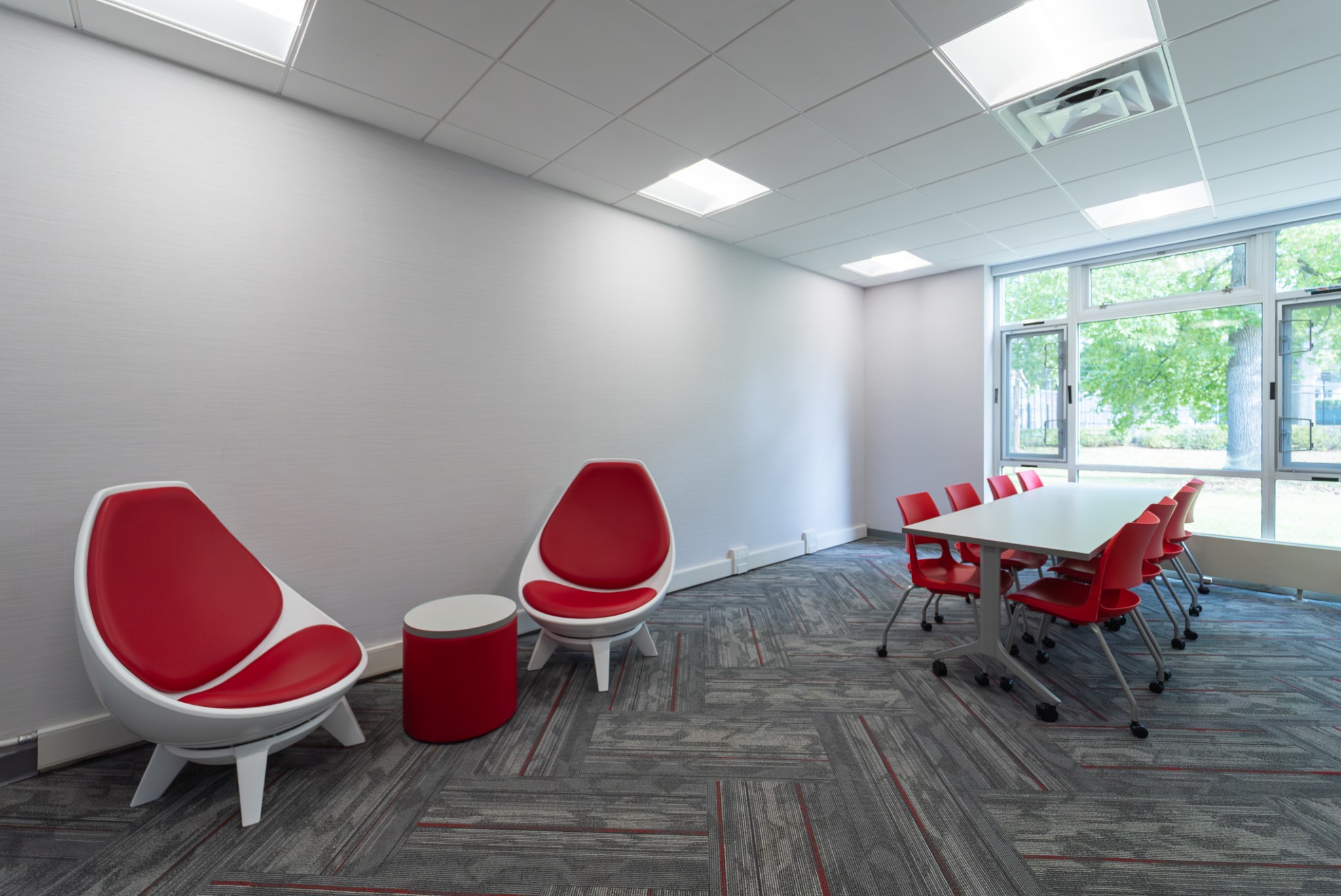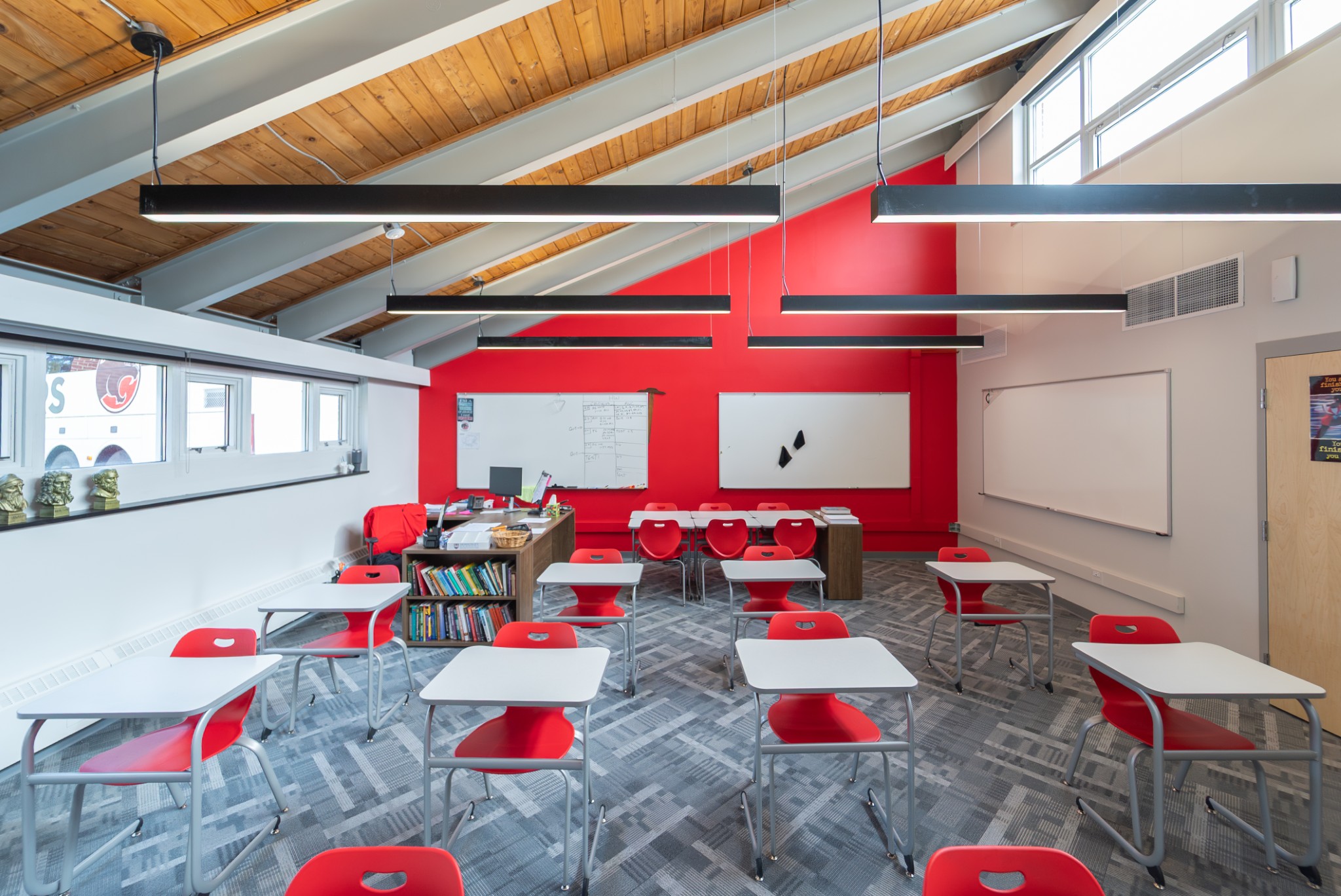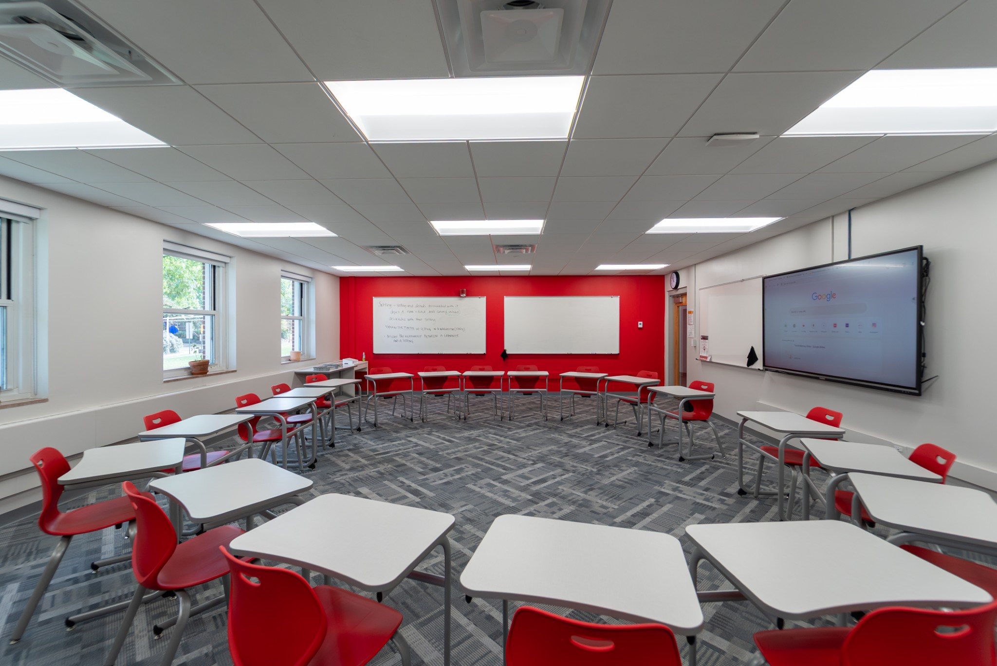 A private, college-preparatory school reimagined its upper-school building into a brighter, more modern learning environment, with student input playing an instrumental role in the process. The redesign of classrooms, common spaces, and study zones introduces flexible layouts, refreshed finishes, and a clean, contemporary aesthetic- creating an open, adaptable setting that supports both focused study and collaborative learning.