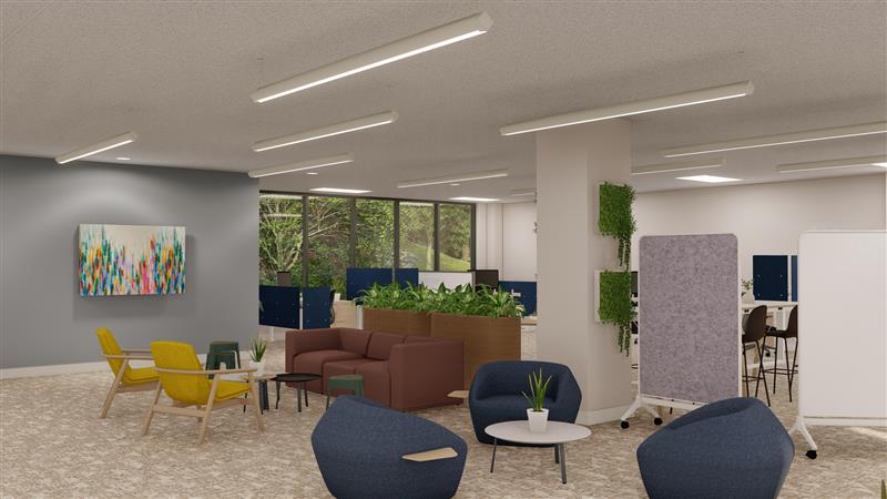 Spatial boundaries created through lighting changes, furniture, and material transitions can help our brains shift between tasks more effectively, allowing associates to move between different types of work with greater ease and productivity.